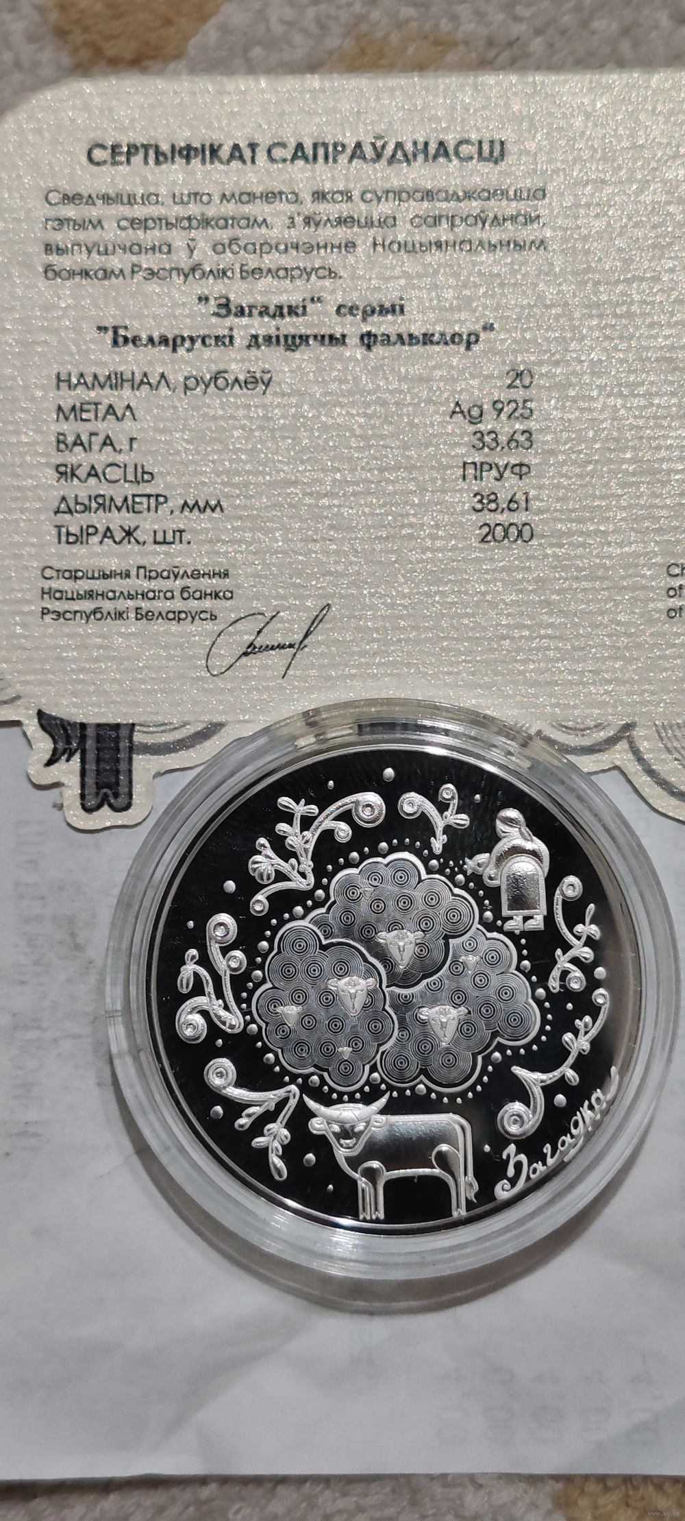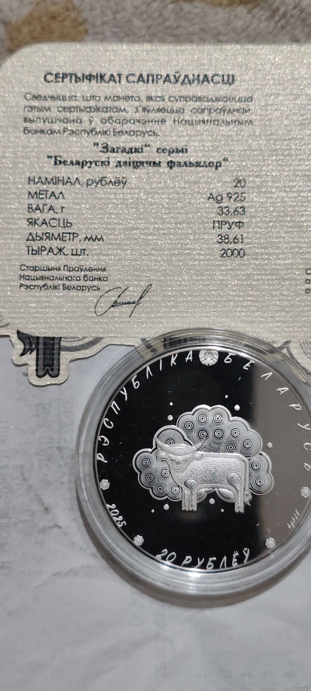 20 рублей 2025. Загадки серии белорусский детский фольклор. Республика Беларусь серебро