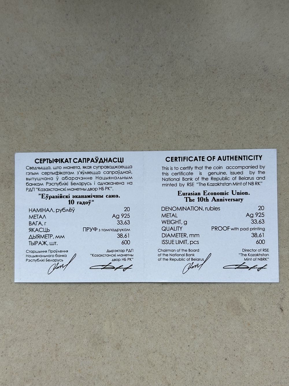 | Вес монеты | 33,62 г |