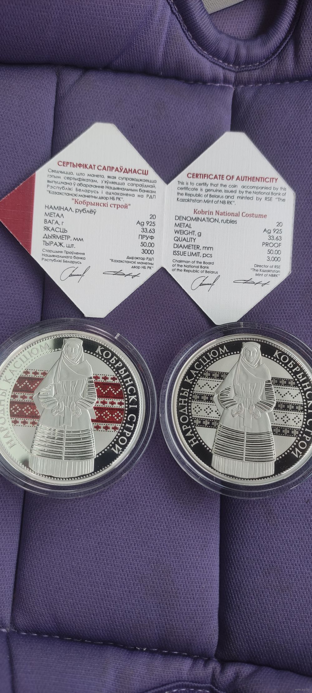 20 рублей серебро 1 рубль медноникель 2021г. Республика Беларусь . Кобринский строй комплект