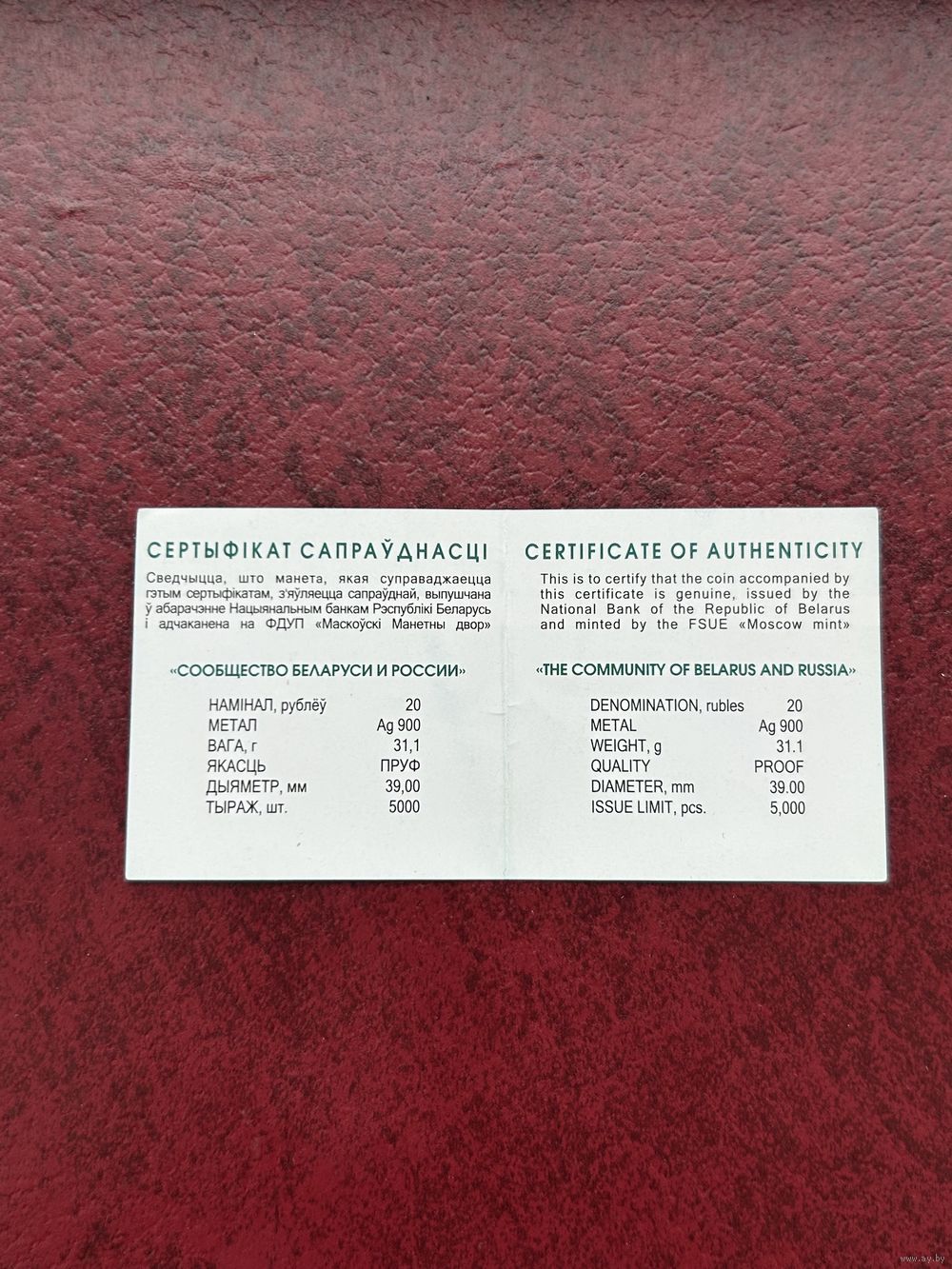 | Вес монеты | 31,1 г |