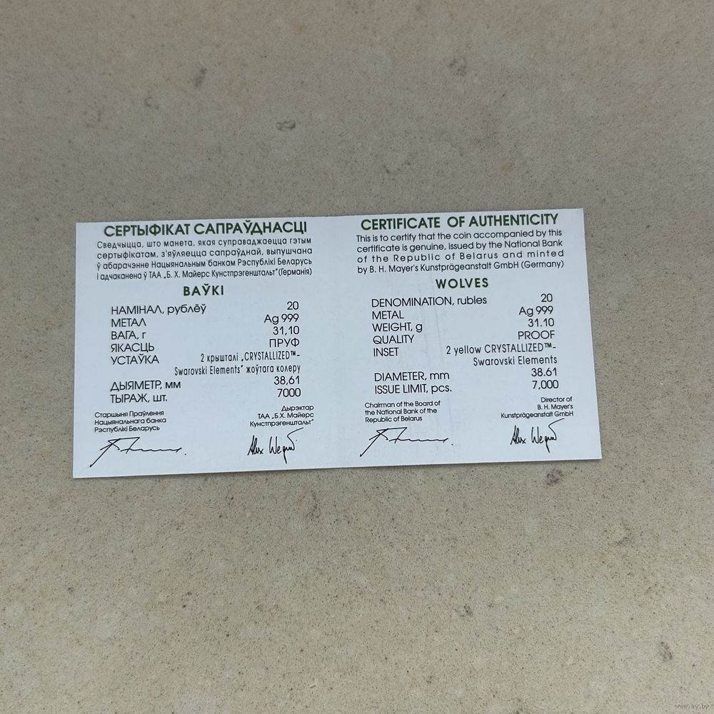 | Вес монеты | 31,1 г |