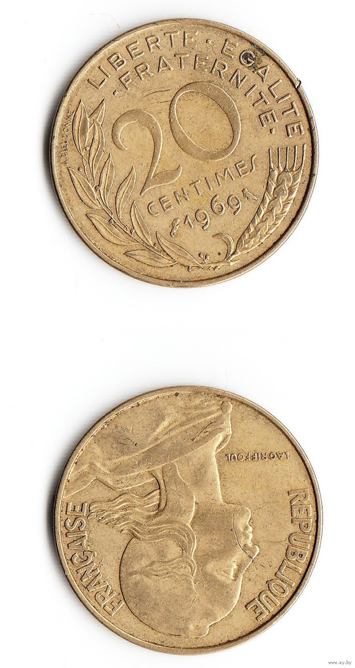 20 сантимов Франция 1969 год