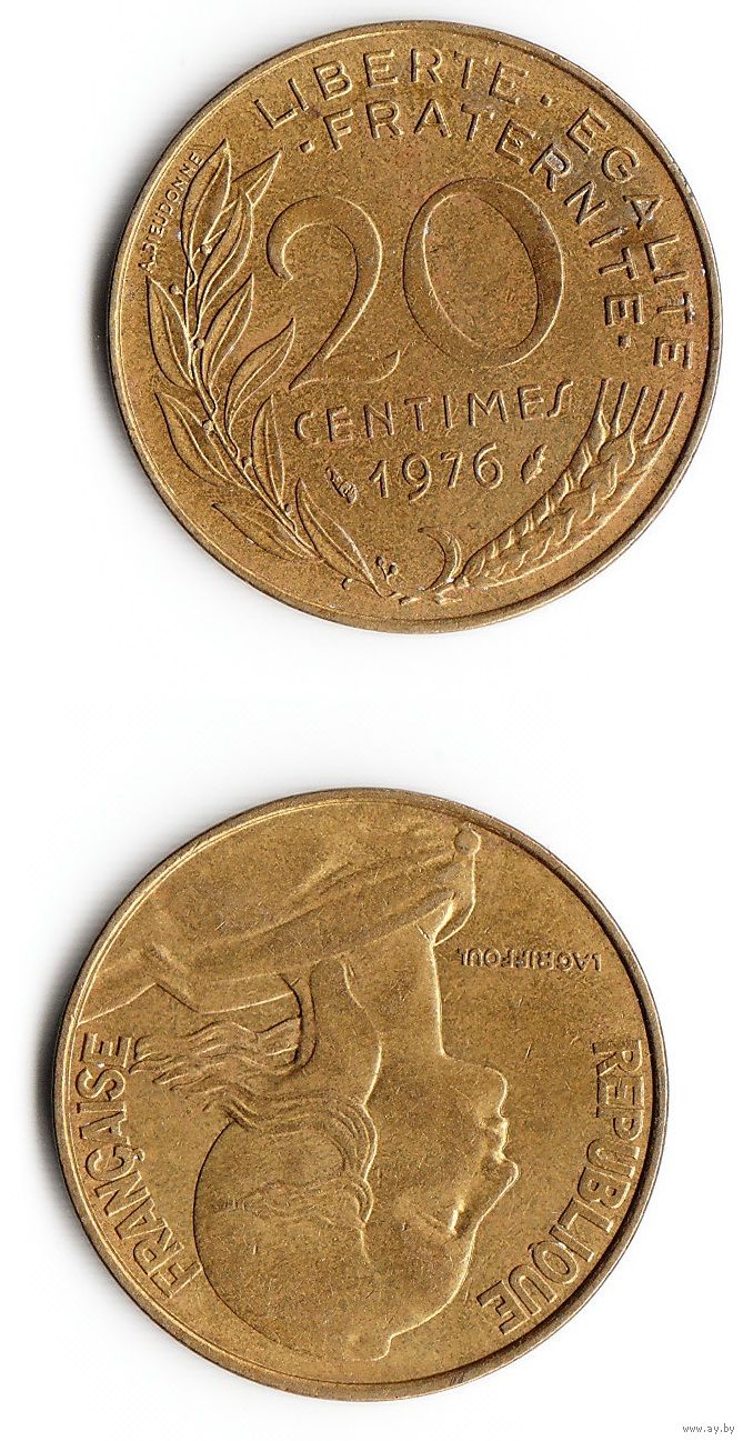 20 сантимов Франция 1976 год