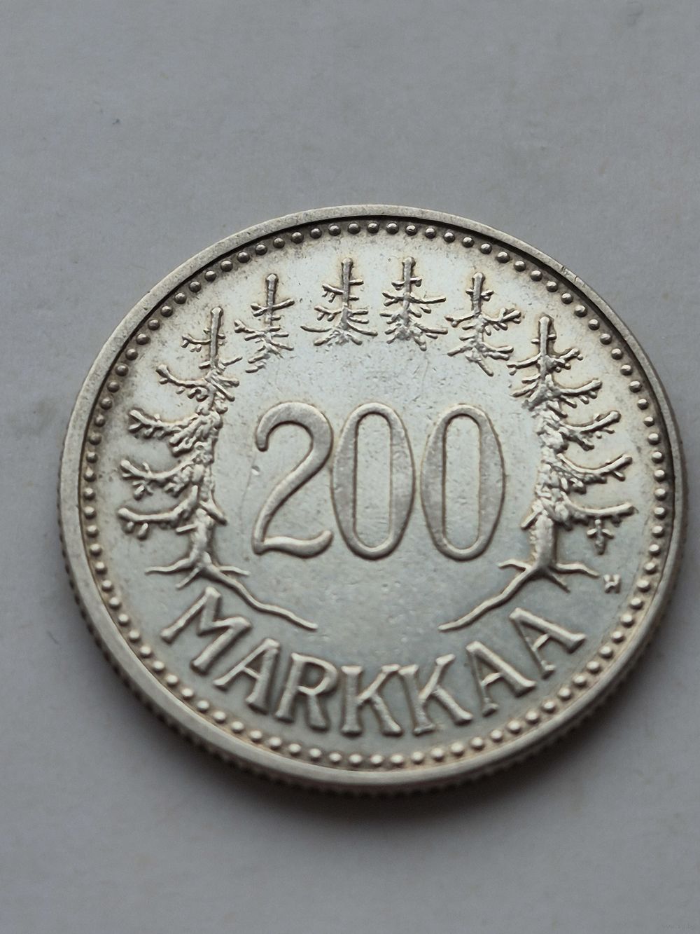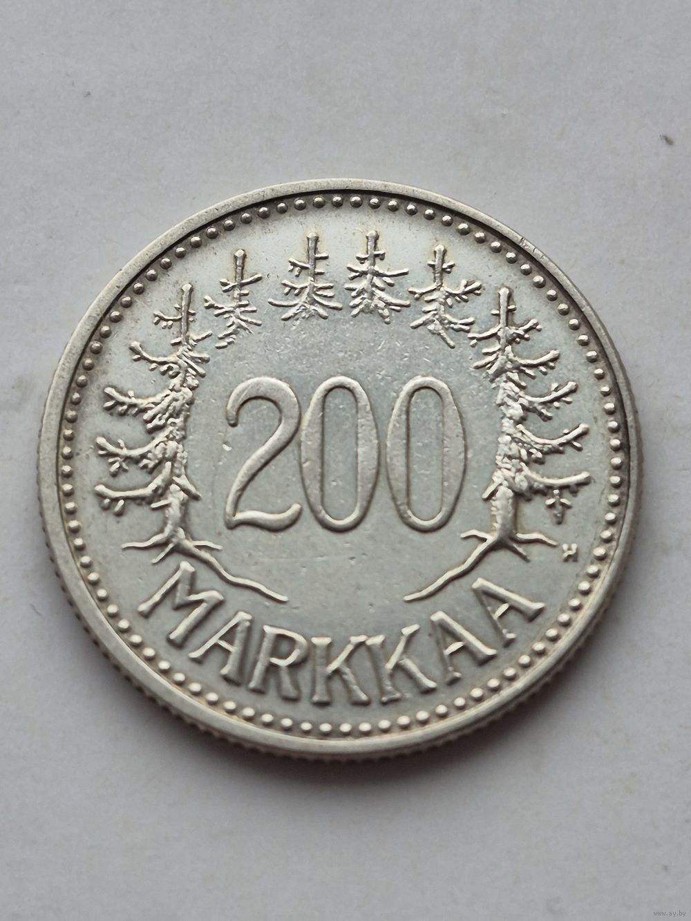 200 марок 1956 года. Финляндия. Финляндская Республика (Suomi) (1918 - 1962). Серебро 500. Монета не чищена. 45644.