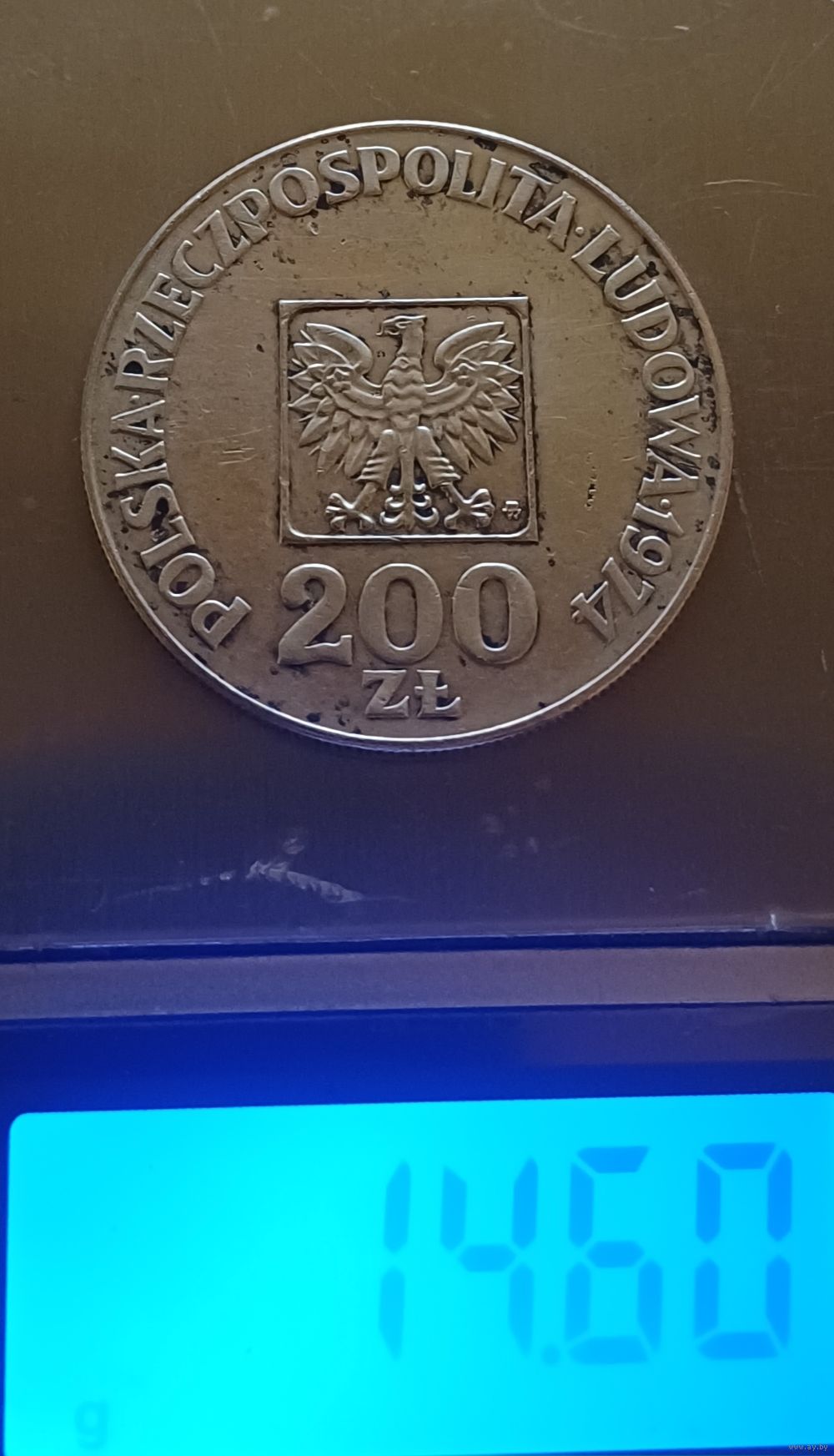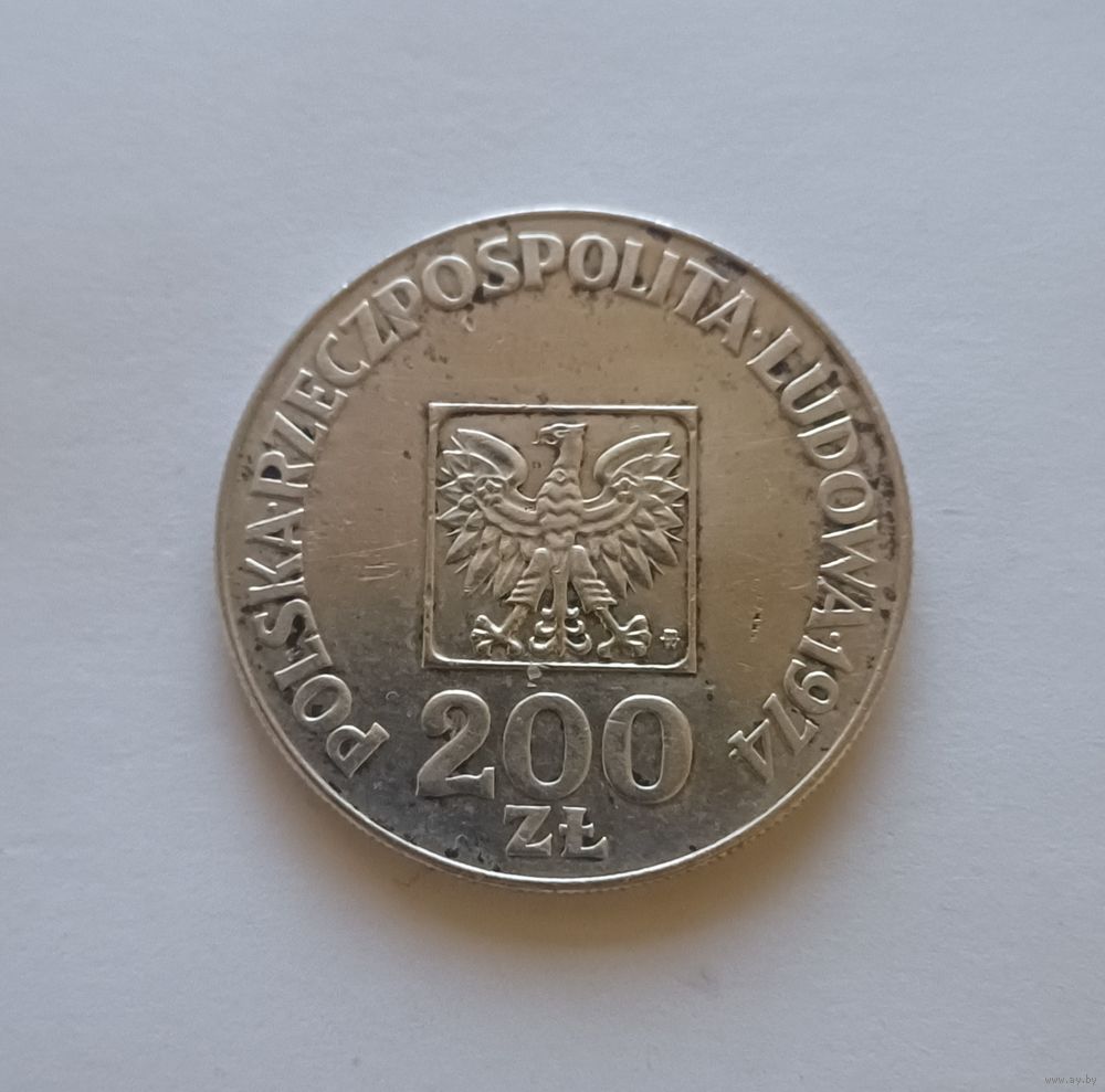 200 злотых. 1974г . 625 пр., серебра. Польша.30 лет образования Польской Народной Республики. Не чищена.
