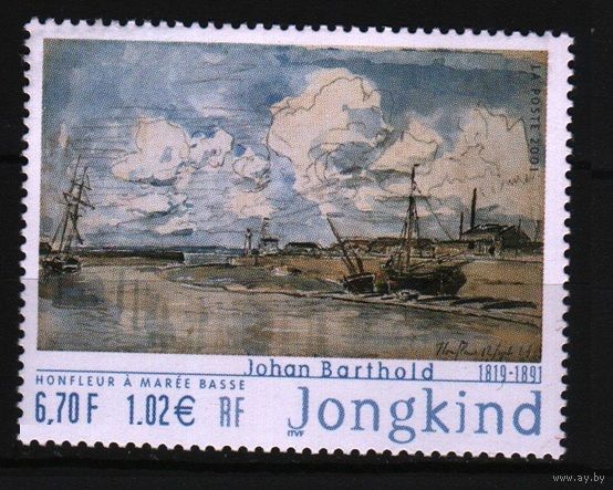 2001 Франция живопись "Онфлер во время отлива", Йохан Бартольд Йонгкинд (1819-1891) Mi-3568 1х-м**