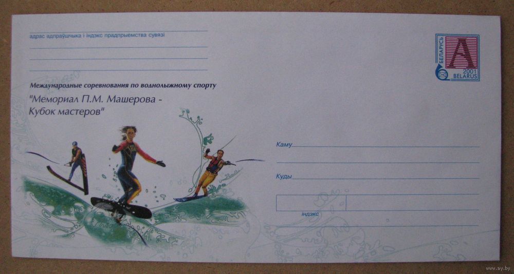 2001 г. ХМК Беларусь Соревнования по воднолыжному спорту "Мемориал П.М. Машерова". Спортсмены на водных лыжах. Худ. С. Чирков. з. 5365 .