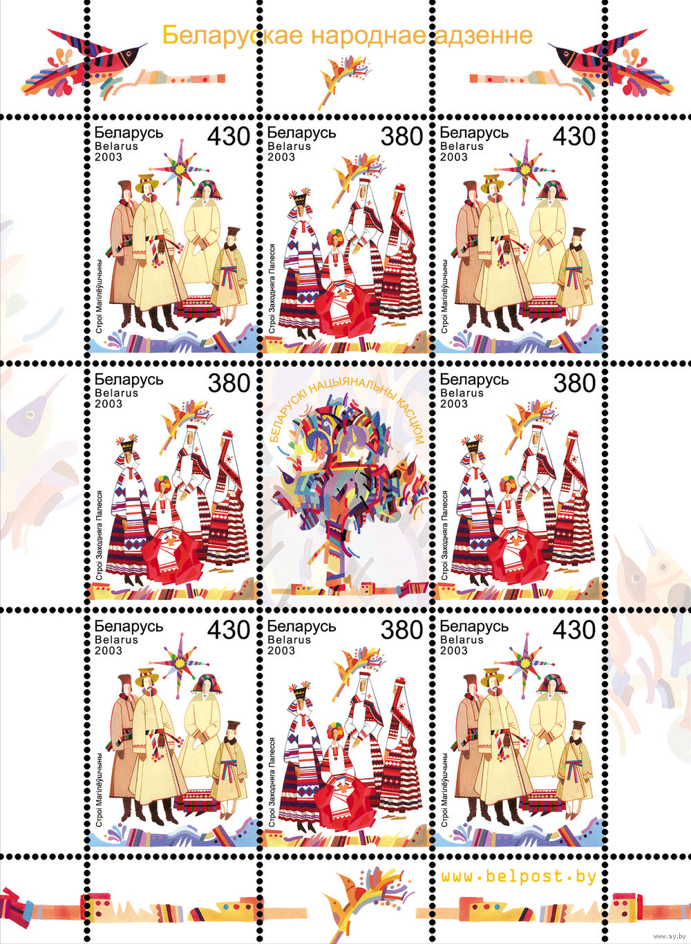 2003 БЕЛАРУСЬ малый лист коллекционных марок Белор. народная одежда MNH