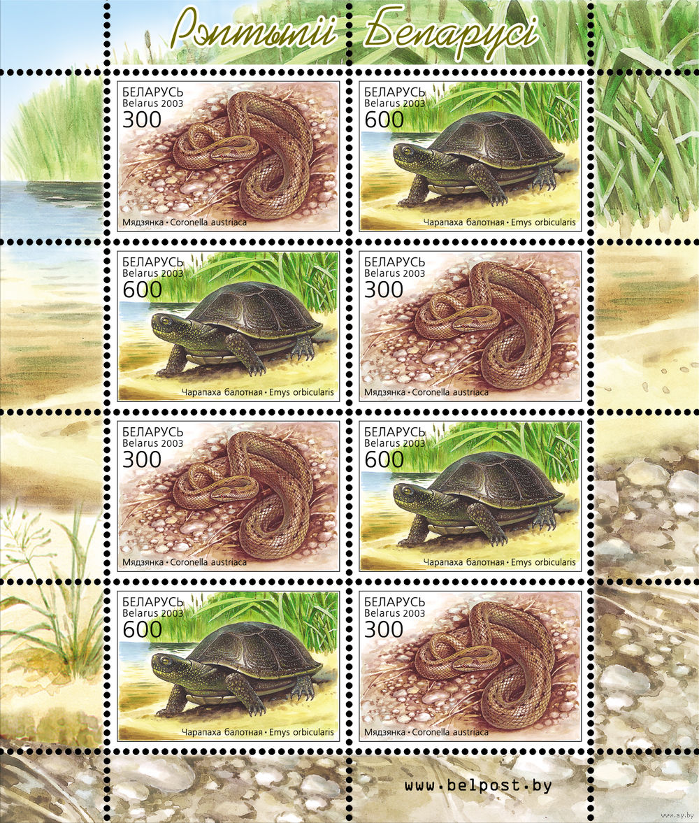 2003 БЕЛАРУСЬ малый лист коллекционных марок Фауна. Рептилии MNH