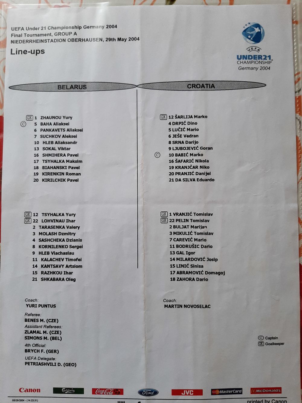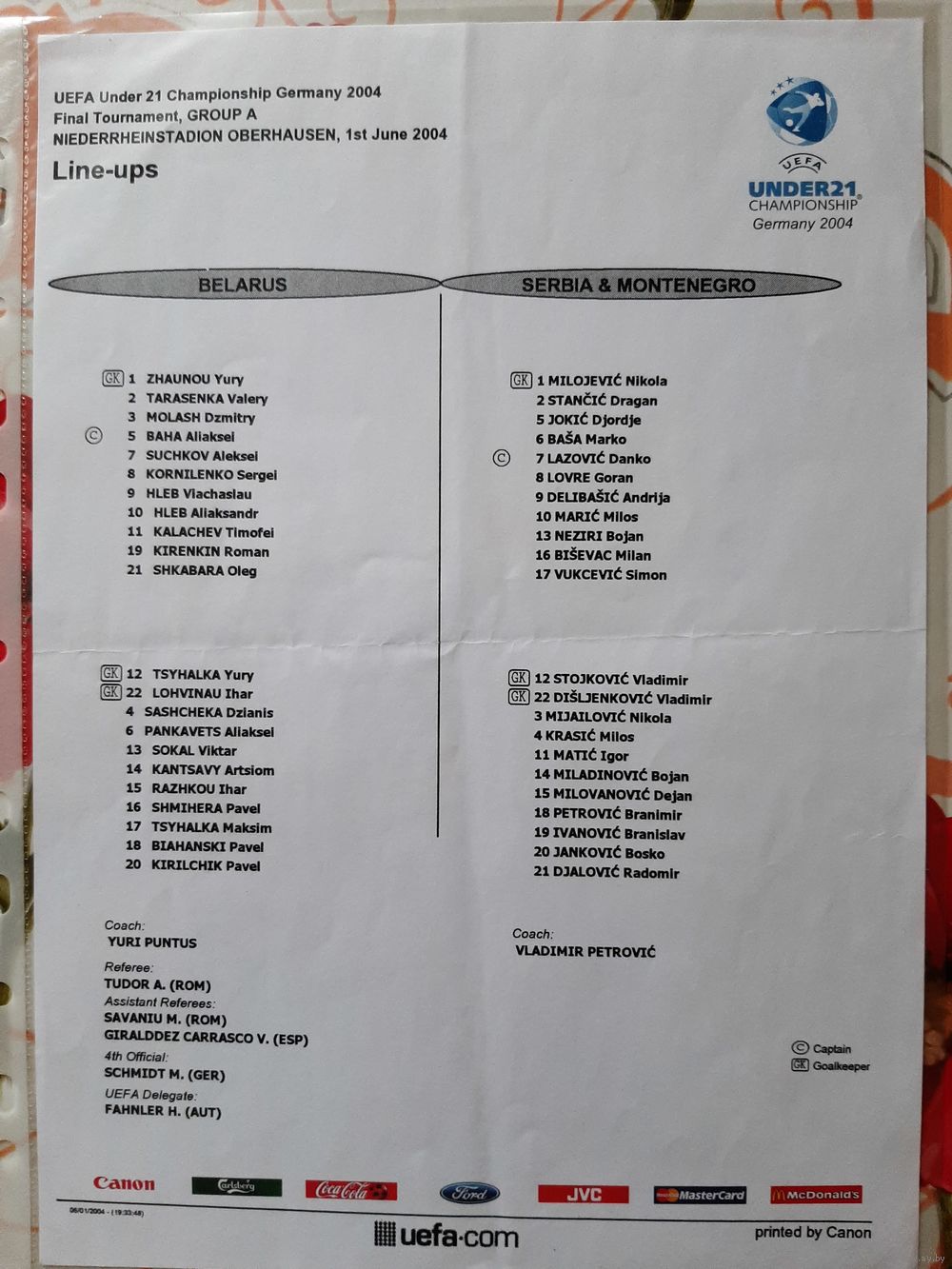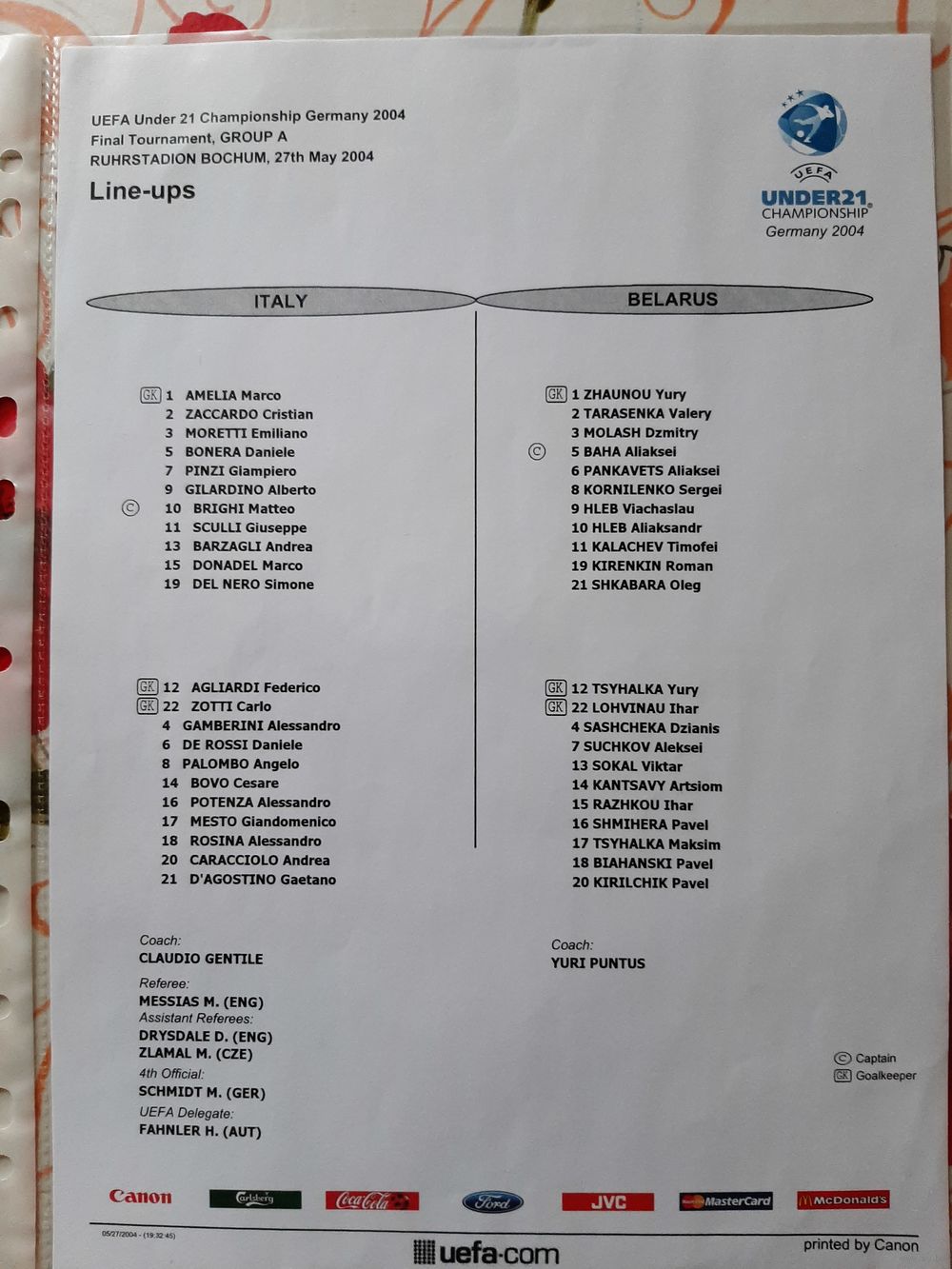 Две официальные программки + протоколы УЕФА финального турнира молодёжного чемпионата Европы с участием сборной Беларуси.