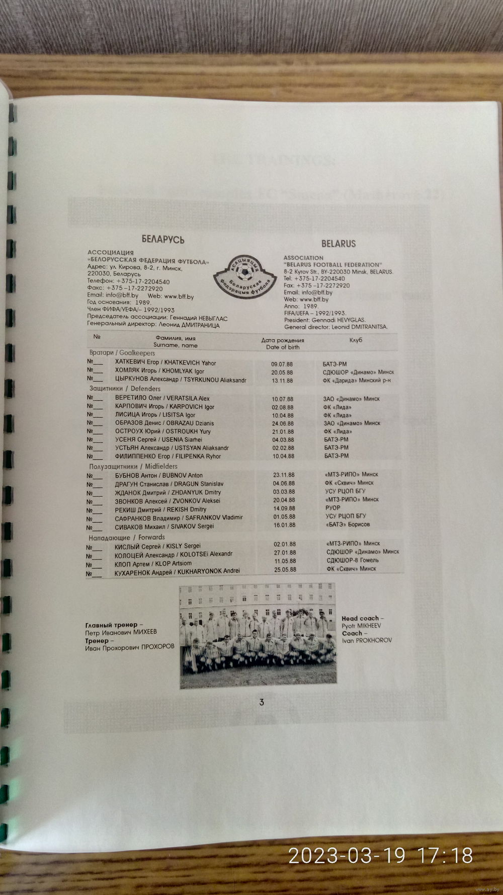 Отборочная группа 1-го квалификационного раунда с участием юношеских сборных U17 Беларуси, Португалии, Мальты, Сан-Марино. В лоте представлена программа для участников турнира.