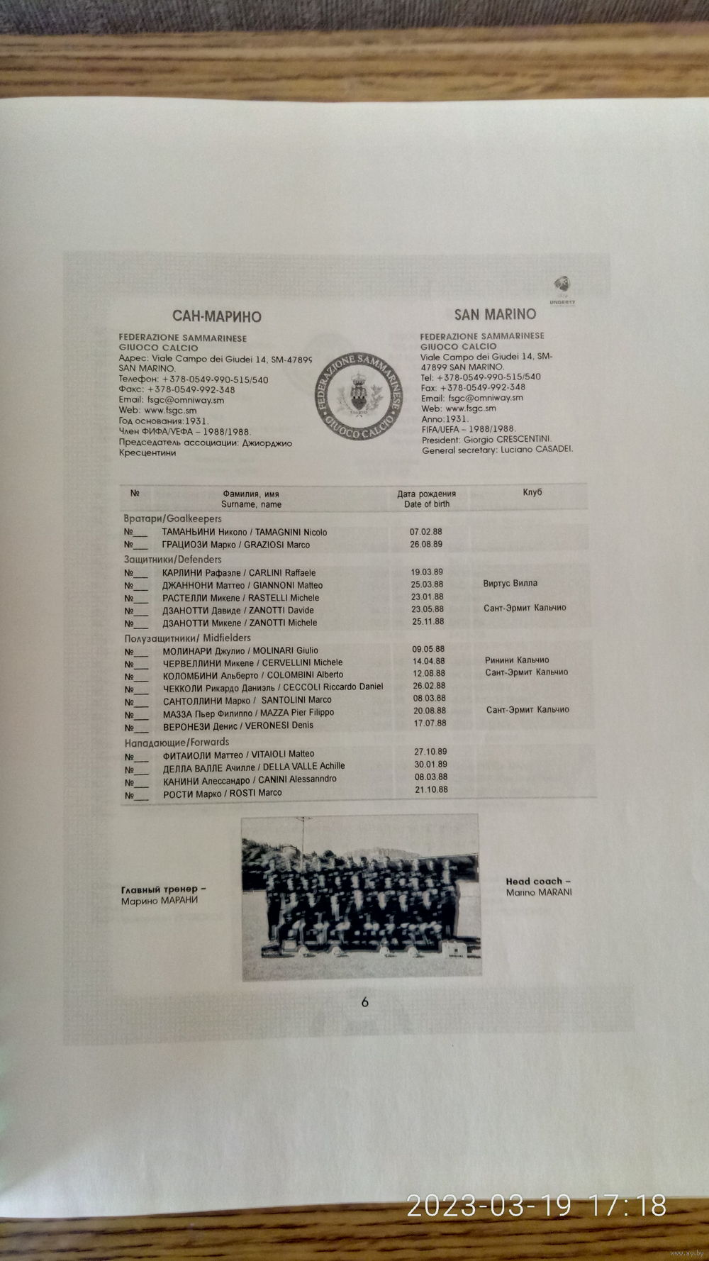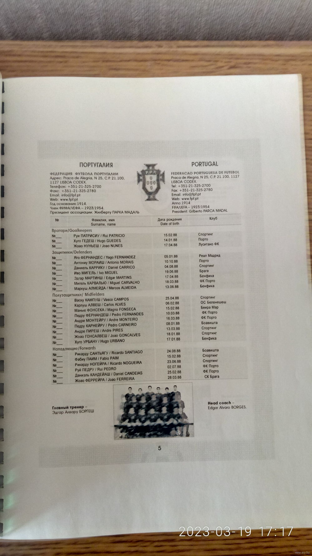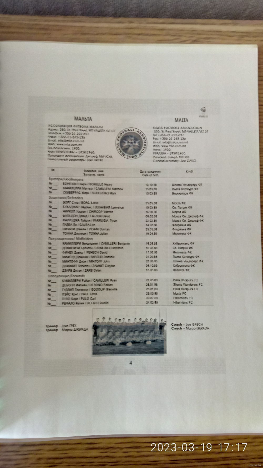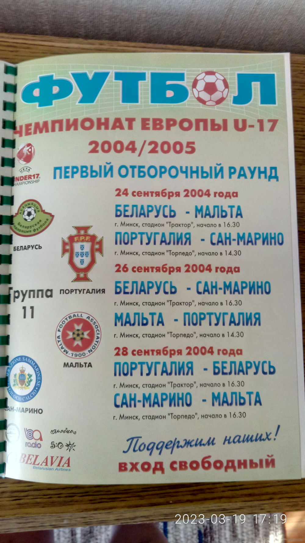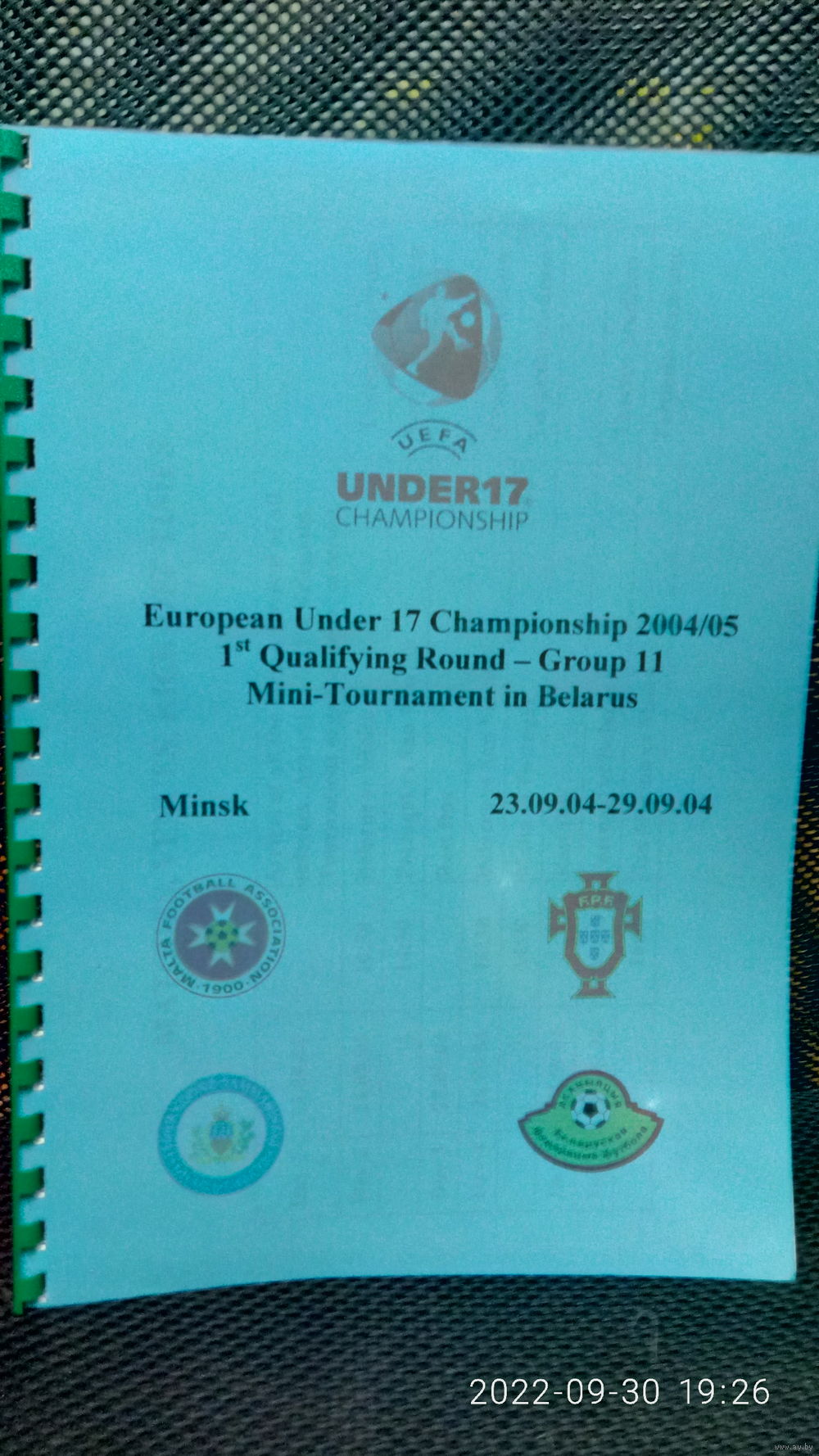 Отборочная группа 1-го квалификационного раунда с участием юношеских сборных U17 Беларуси, Португалии, Мальты, Сан-Марино. В лоте представлена программа для участников турнира.
