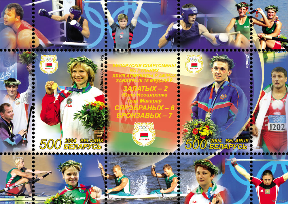 2004 БЕЛАРУСЬ блок коллекционных марок "Победители и и призеры XXVIIIОлимпиады в Афинах MNH