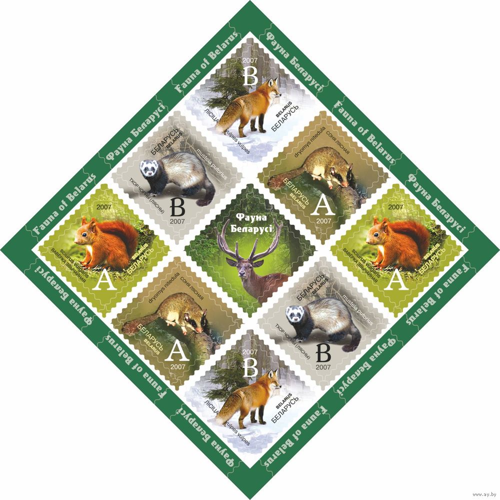 2007 БЕЛАРУСЬ малый лист коллекционных марок "Фауна Беларуси" MNH