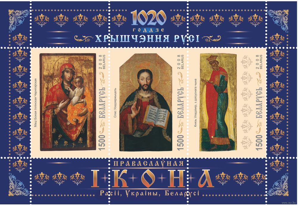 2008 БЕЛАРУСЬ блок коллекционных марок "1020-летие крещения славянских народов России,Украины,БеларусиMNH