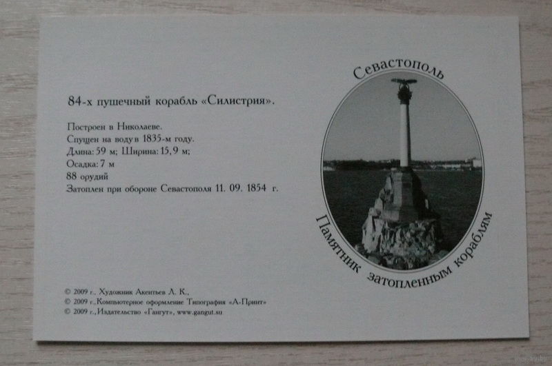 2009; 84-х пушечный корабль "Силистрия"; из серии "Корабли Российского Императорского флота в Крымской войне 1853-1856 гг."