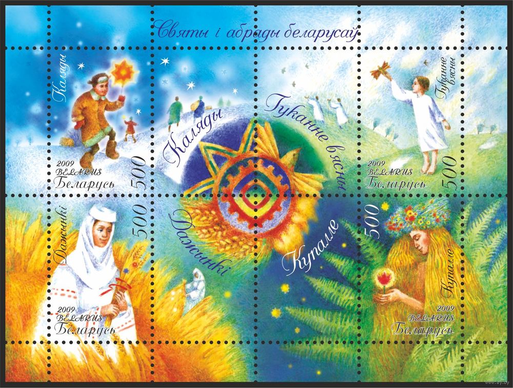 2009 БЕЛАРУСЬблок коллекционных марок "Праздники и обряды белорусов"Каляды,Гуканне,Купалле,Дажы нки" MNH