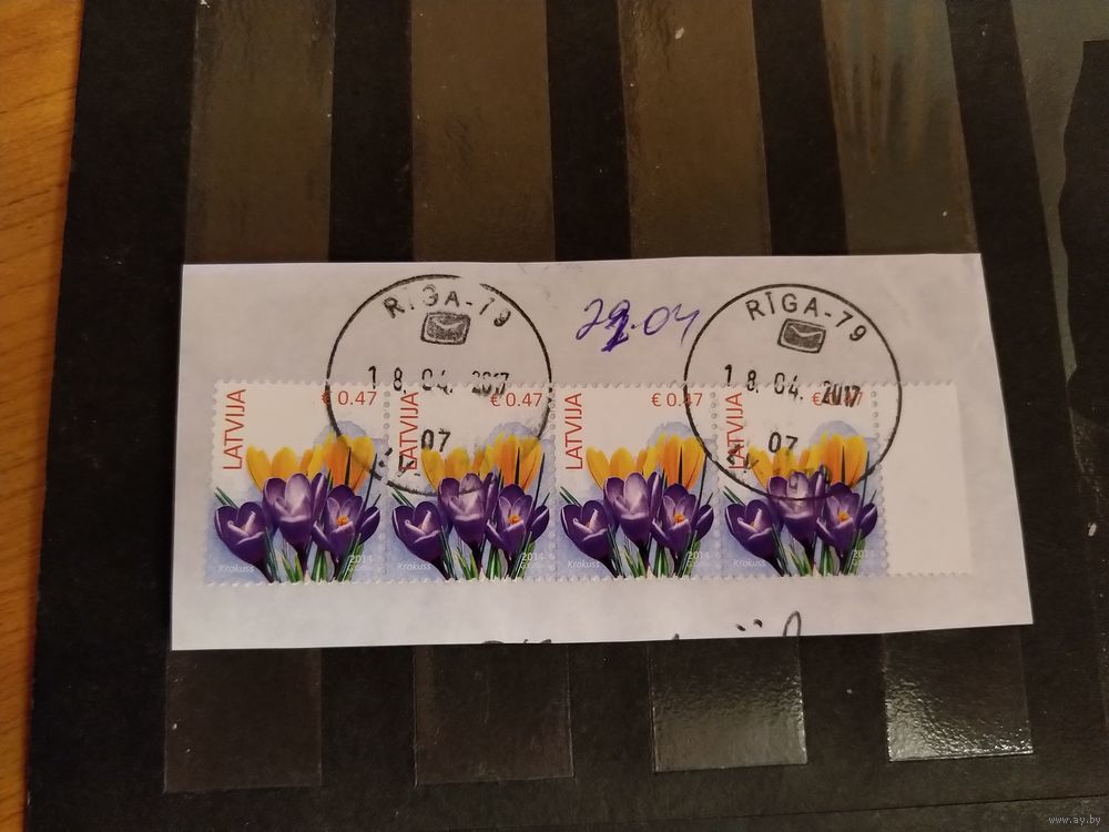 2014 Латвия флора цветы Мих 883 оценка 4 евро на вырезке с четким гашением (5-6)