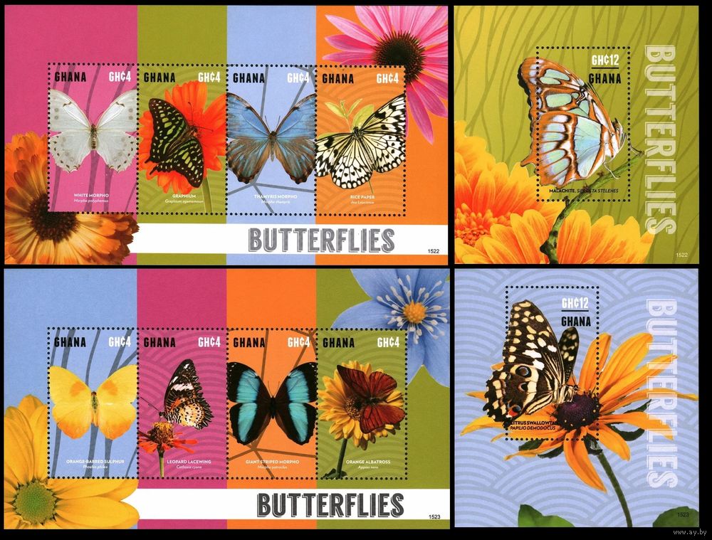 2015 Гана 4610-4613KL-4614-4617KL+B569-570 Бабочки 42,00 евро