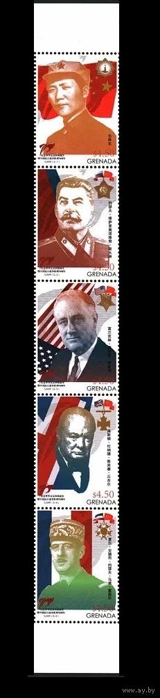 2015 Гренада 7068-7072strip Мао Цзэдун, И. Сталин, де Голль, Черчилль, Ф. Роузвиль 20,00 евро