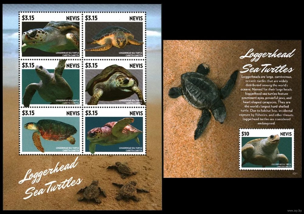 2015 Невис 3050-3055KL+B371 Морская фауна - Черепахи 26,00 евро