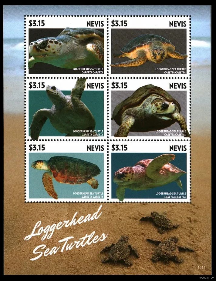 2015 Невис 3050-3055KL Морская фауна - Черепахи 17,00 евро