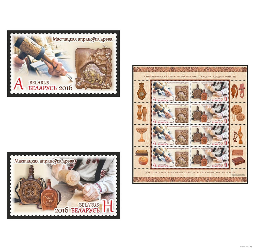 2016 БЕЛАРУСЬ 2 марки или малый лист "Художественная обработка дерева" MNH