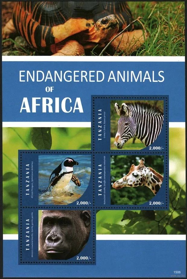 2016 Танзания 5225-5228KL Фауна, Черепаха, Обезьяны, Жираф, Пингвин 12,00 евро