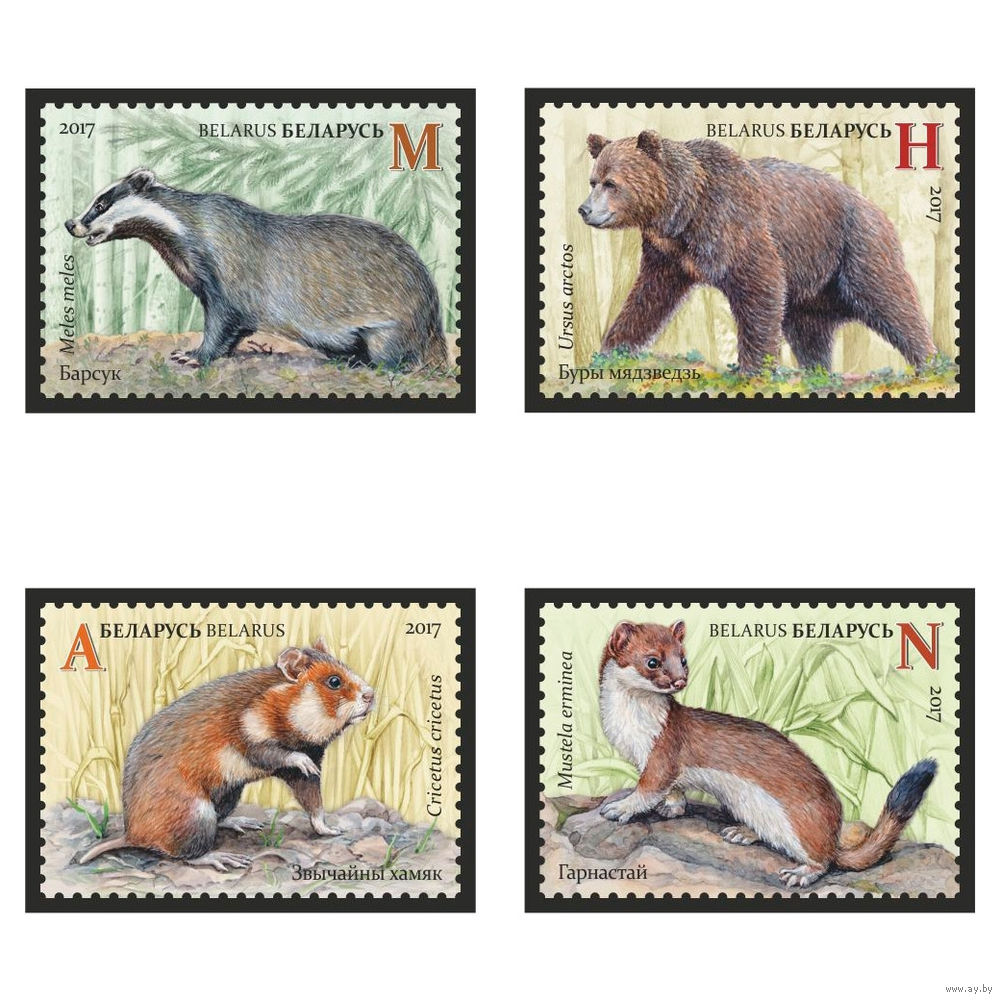 2017 БЕЛАРУСЬ серия марок "Красная книга Республики Беларусь. Млекопитающие" MNH