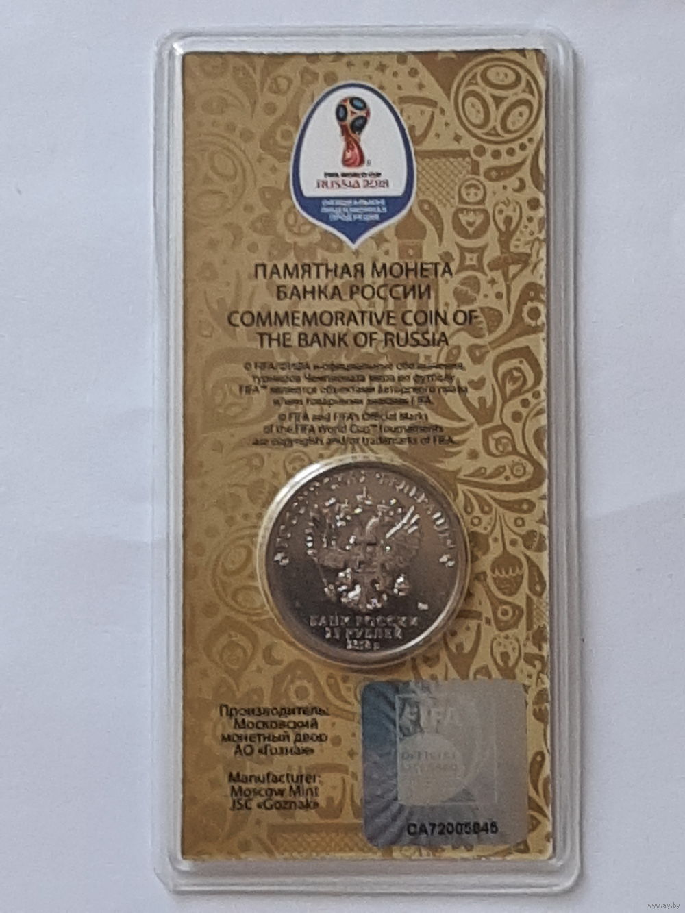 2018. Россия. 25 рублей. XXI Чемпионат Мира 2018. Россия. /кубок/.