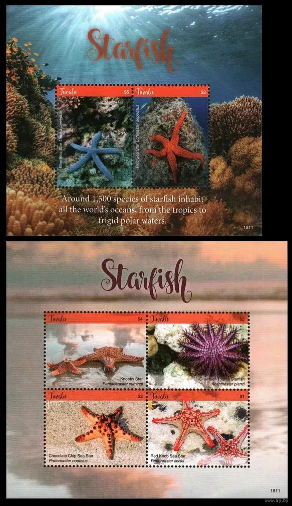 2018 Тувалу 2385-2388KL+B269 Морская фауна - Морские звезды 25,00 евро