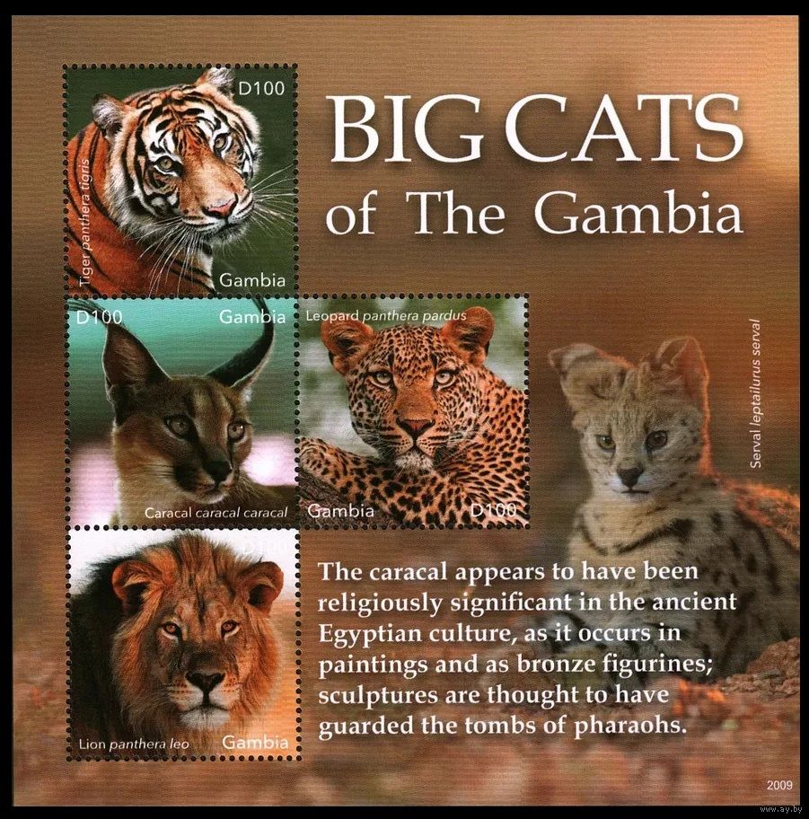 2020 Гамбия 7815-7818KL Кошки - Леопард, Тигр, Лев 20,00 евро