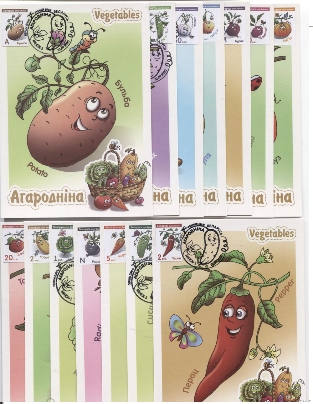 2020 КМ Беларусь Стандарт Овощи и насекомые Пчела Флора Фауна СГ Минск (14 шт.)