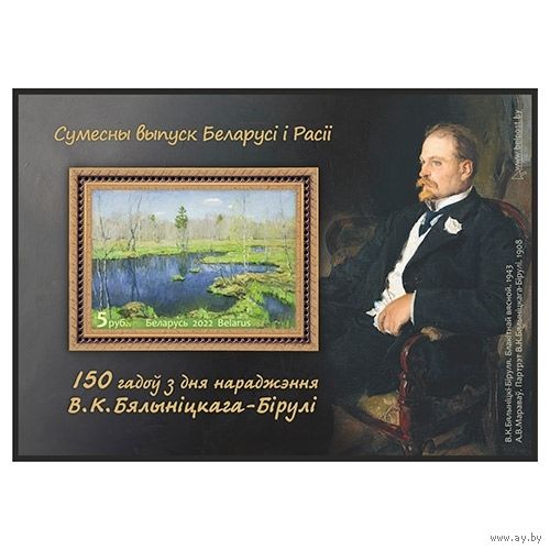 2022 БЕЛАРУСЬ Блок "Совместный выпуск Беларуси и России. 150 лет со дня рождения В.К.Бялыницкого-Бирули" MNH