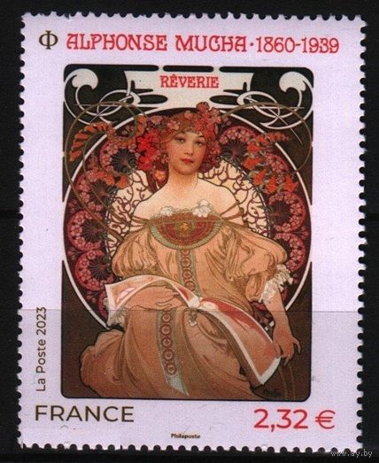 2023 Франция живопись Сны картина художника Альфонса Мухи Mi-8563 1х-марка**