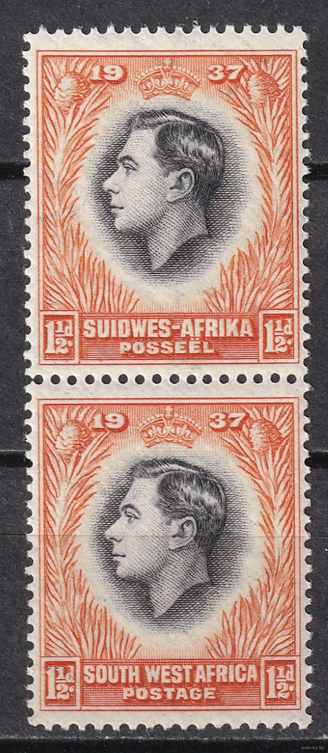 Юго- Западная Африка. Георг VI. Стандарт. 1937 г. 2x1 1/2P. Mi.##186/187. MNH.