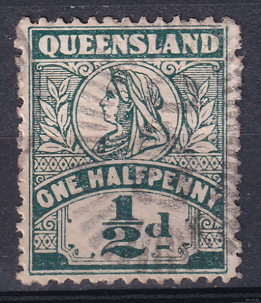 21.Aust. Великобритания. Австралийские штаты. Квинсленд. Виктория. Стандарт. 1907 г. 1/2p. Mi.#114A.