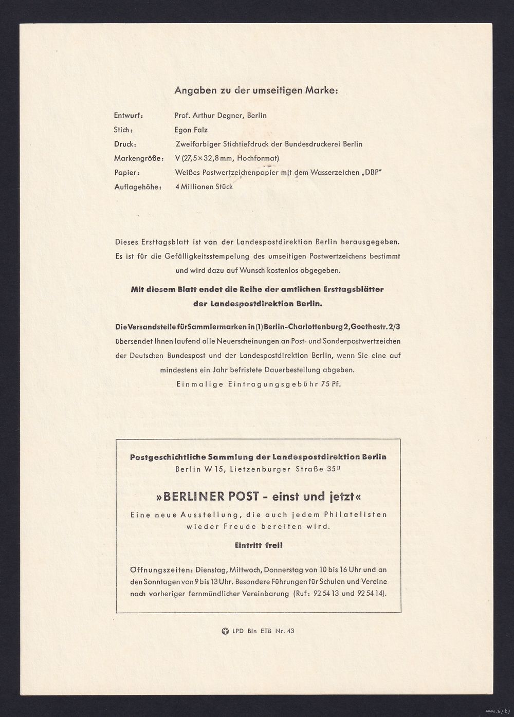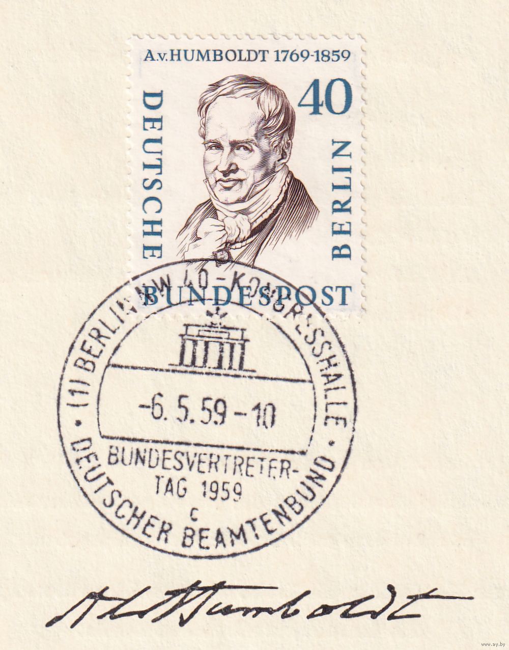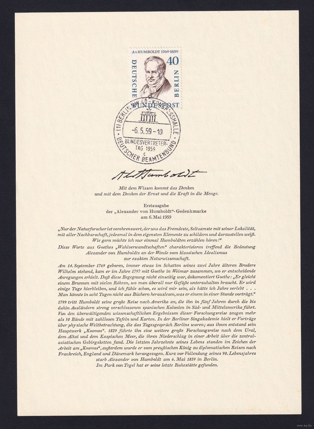 21.ETB. Германия. Западный Берлин. 1957 г. Люди из истории Берлина. Лист первого дня гашения. Mi.#171/ETB#43.
