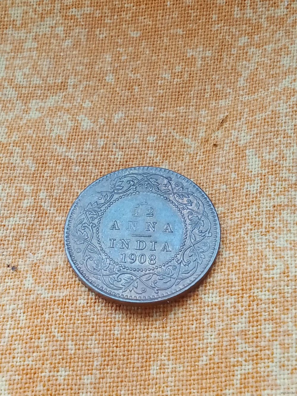 22. Британская Индия 1/12 анна 1908 г. Редкая! (брак - частичный непрочекан номинала) аUNC!