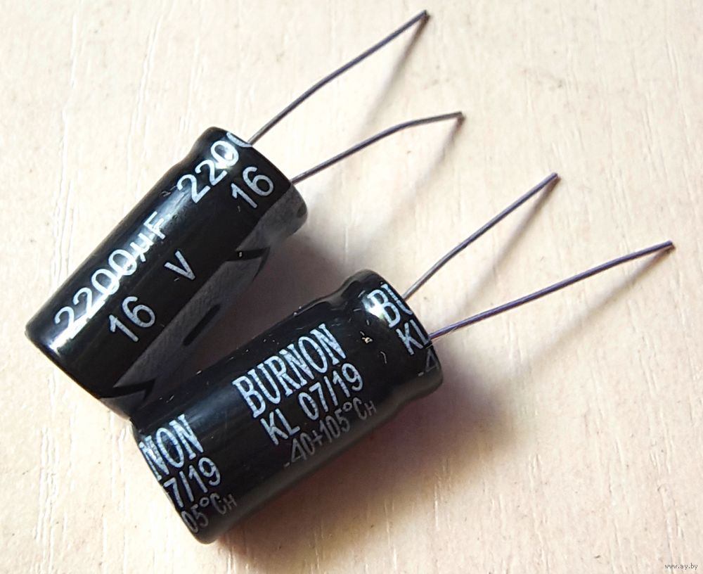 2200 мкФ - 16 В ((Цена за 2 шт)) Burnon. 105 с. 2200мкф. Конденсаторы электролитические. Электролиты. 16В