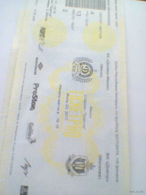 23.07.2017--Динамо Минск--Днепр Могилев--1/8 финала кубка Беларуси--билет с матча