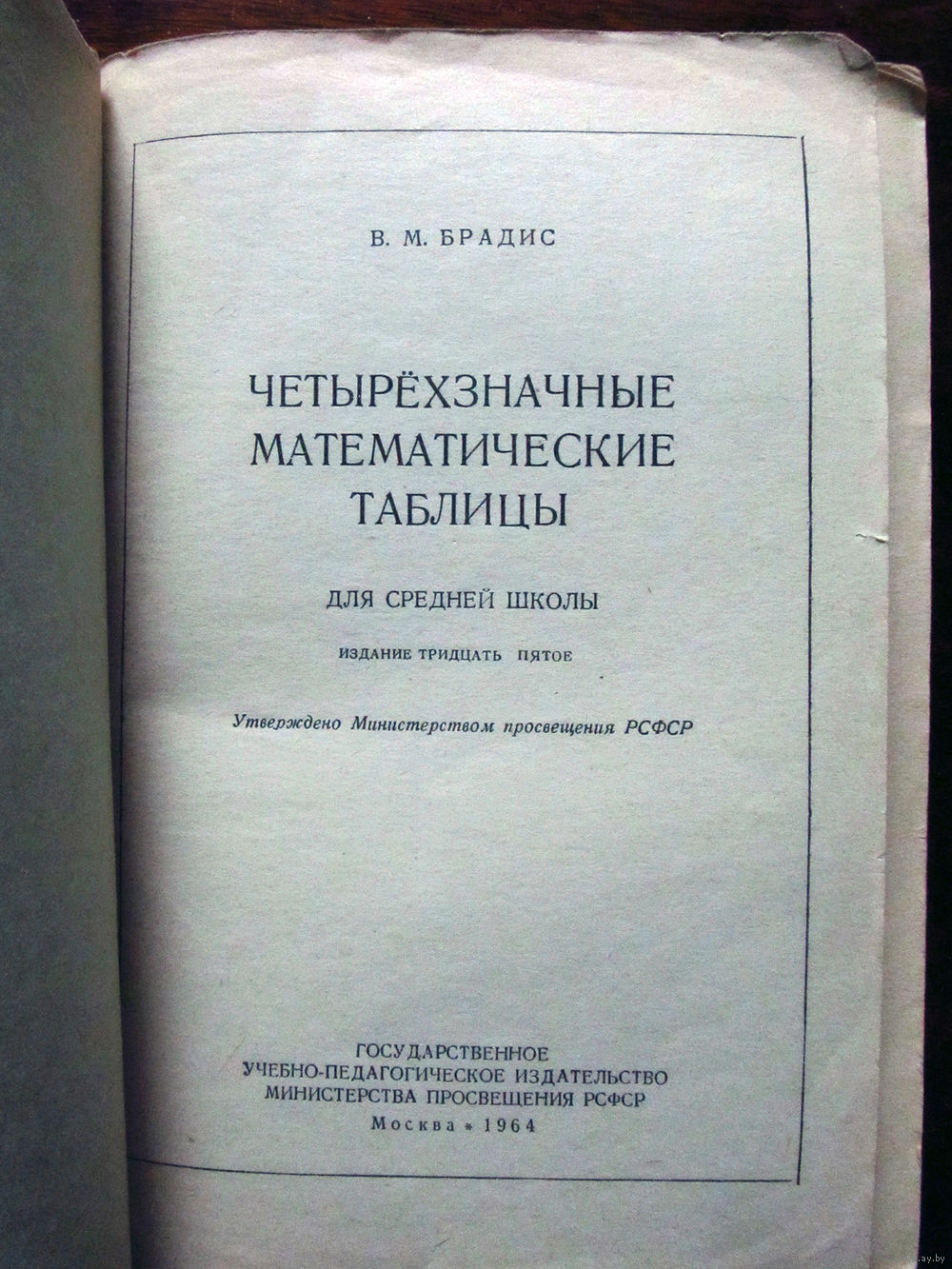 24-35 В.М. Брадис Четырехзначные математические таблицы Для средней школы Москва Учпедгиз 1964 Обложка на месте, но оторвана