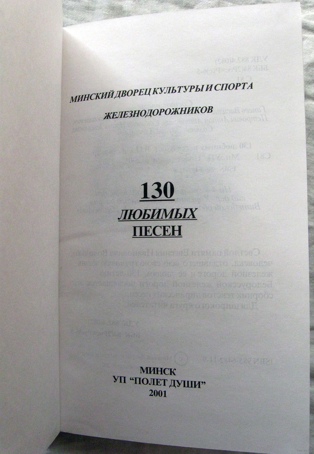 25-04 130 Любимых песен Песенник Сборник песен Минский Дворец Культуры и спорта железнодорожников Минск УП Полет души 2001 Тираж 2000