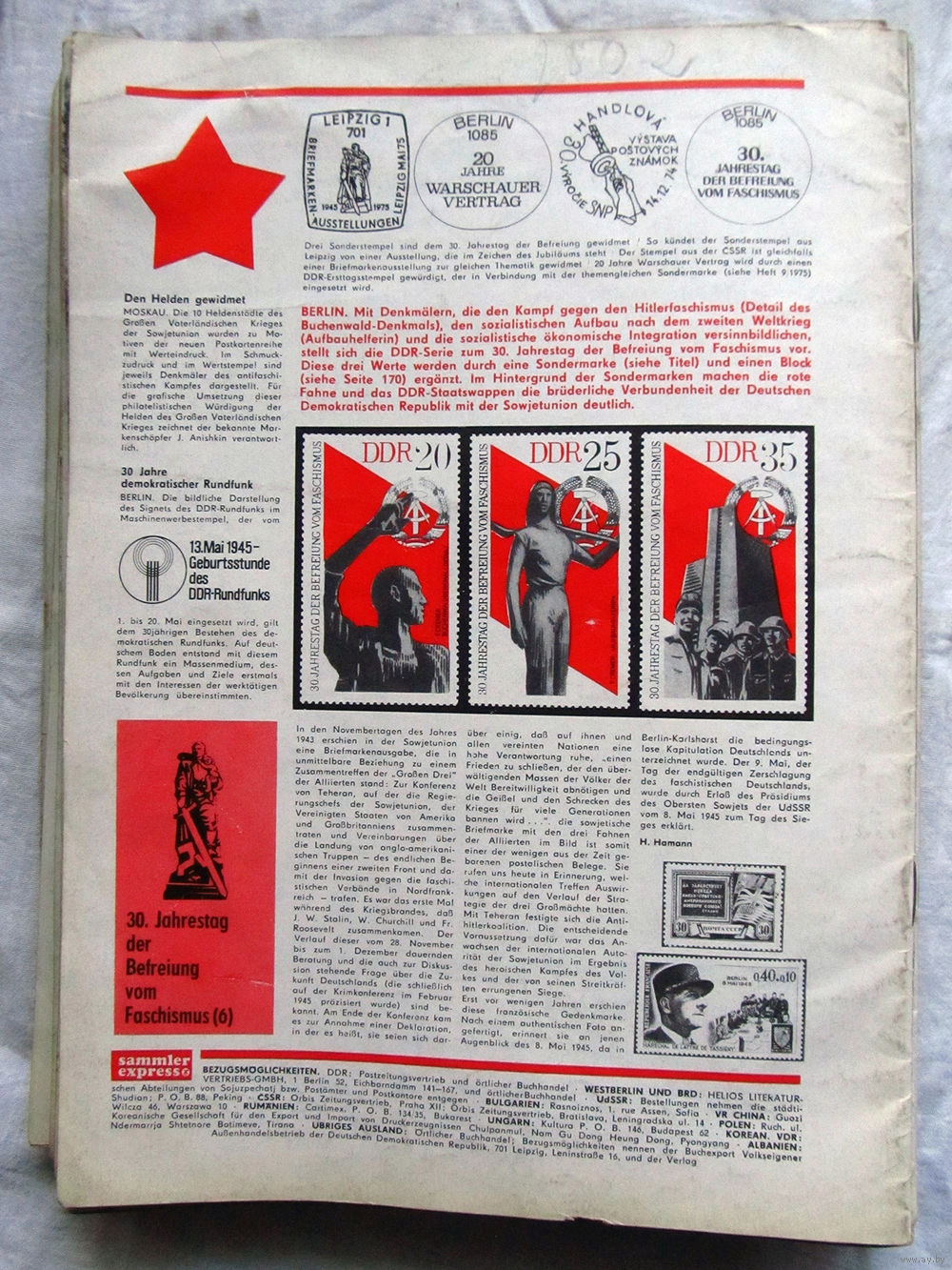 25-10 Журнал ГДР для коллекционеров нумизматов филателистов Sammler Express Номер 8-1975