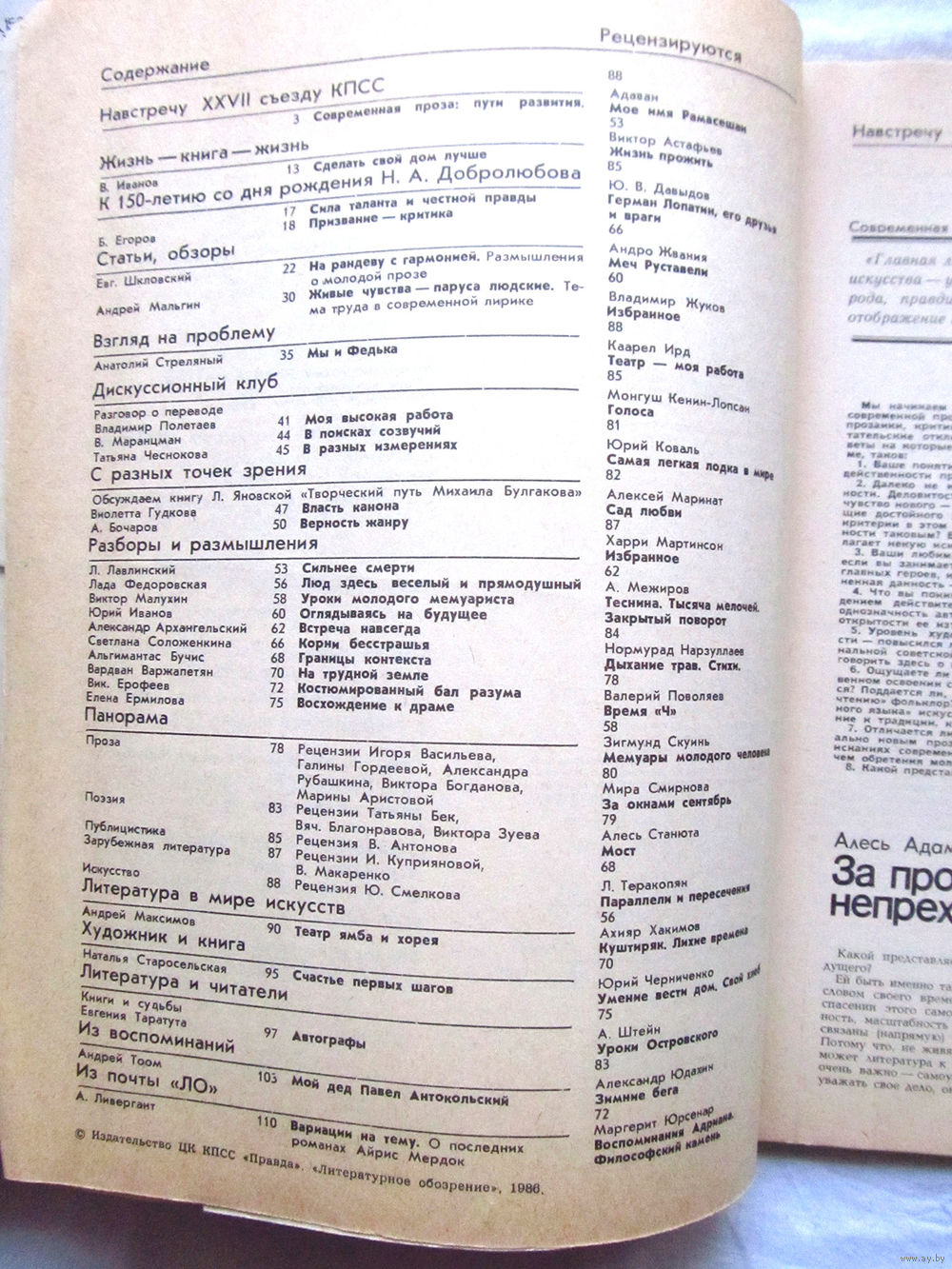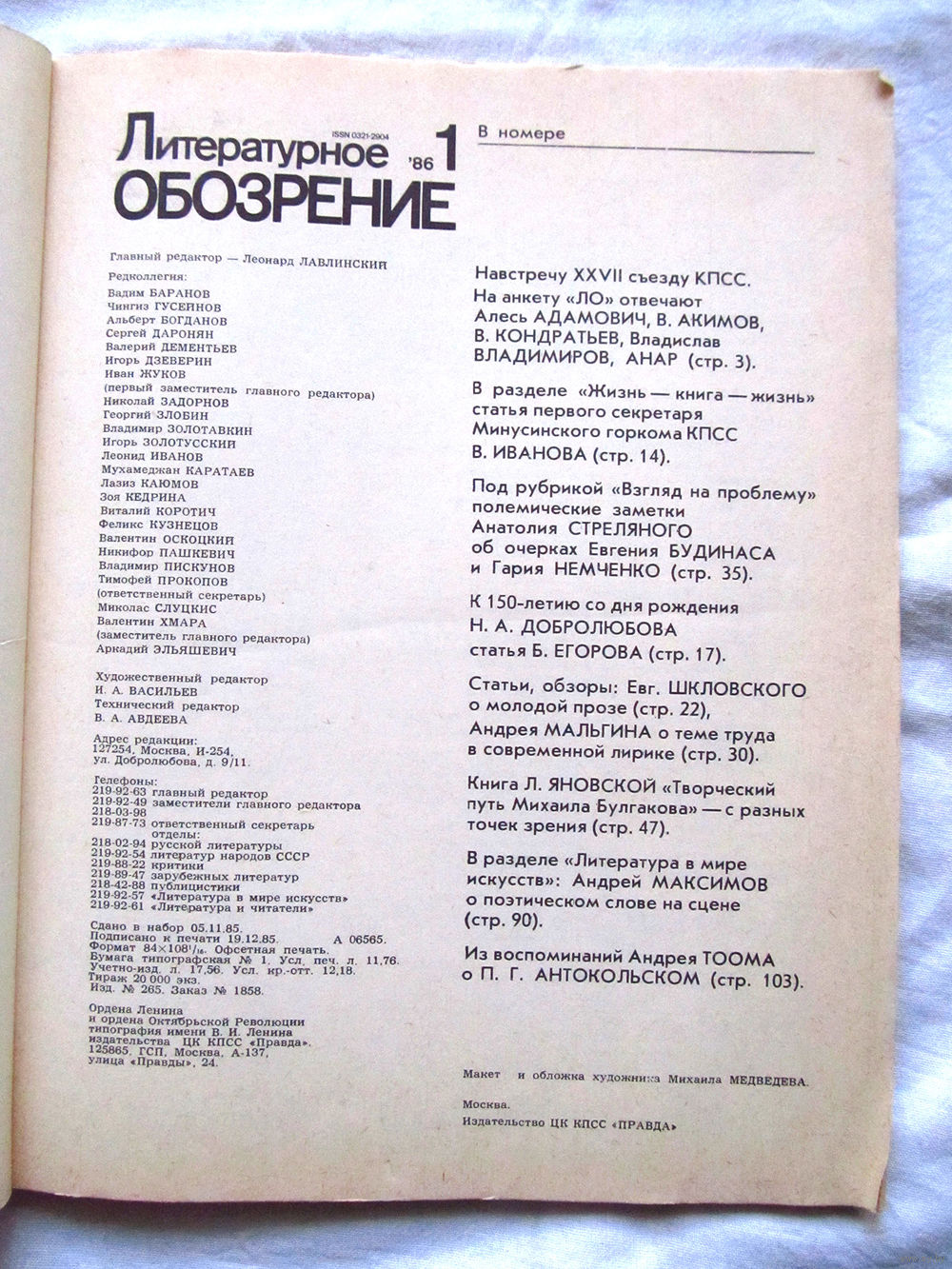 25-10 Журнал Литературное обозрение Номер 1-1986