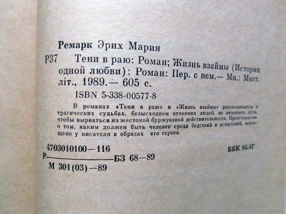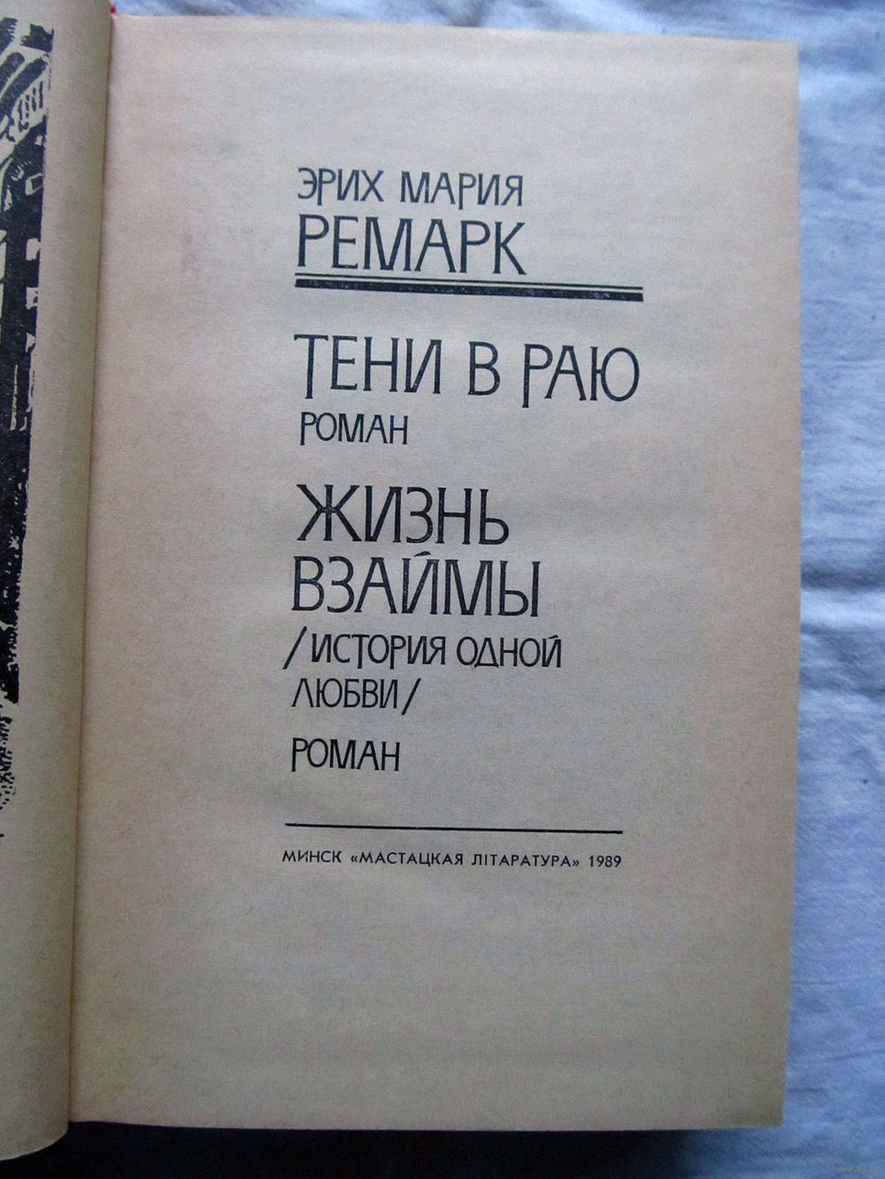 25-20 Эрих Мария Ремарк Тени в раю Жизнь взаймы Минск 1989