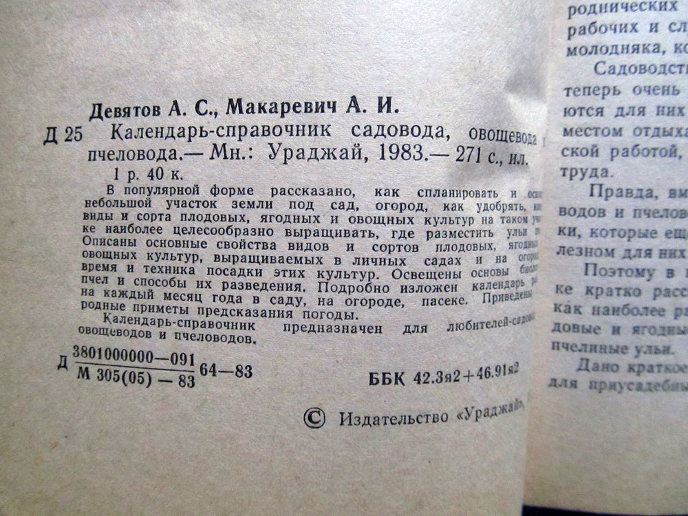 25-31 А.С. Девятов А.И. Макаревич Календарь-справочник садовода, овощевода и пчеловода Минск Ураджай 1983