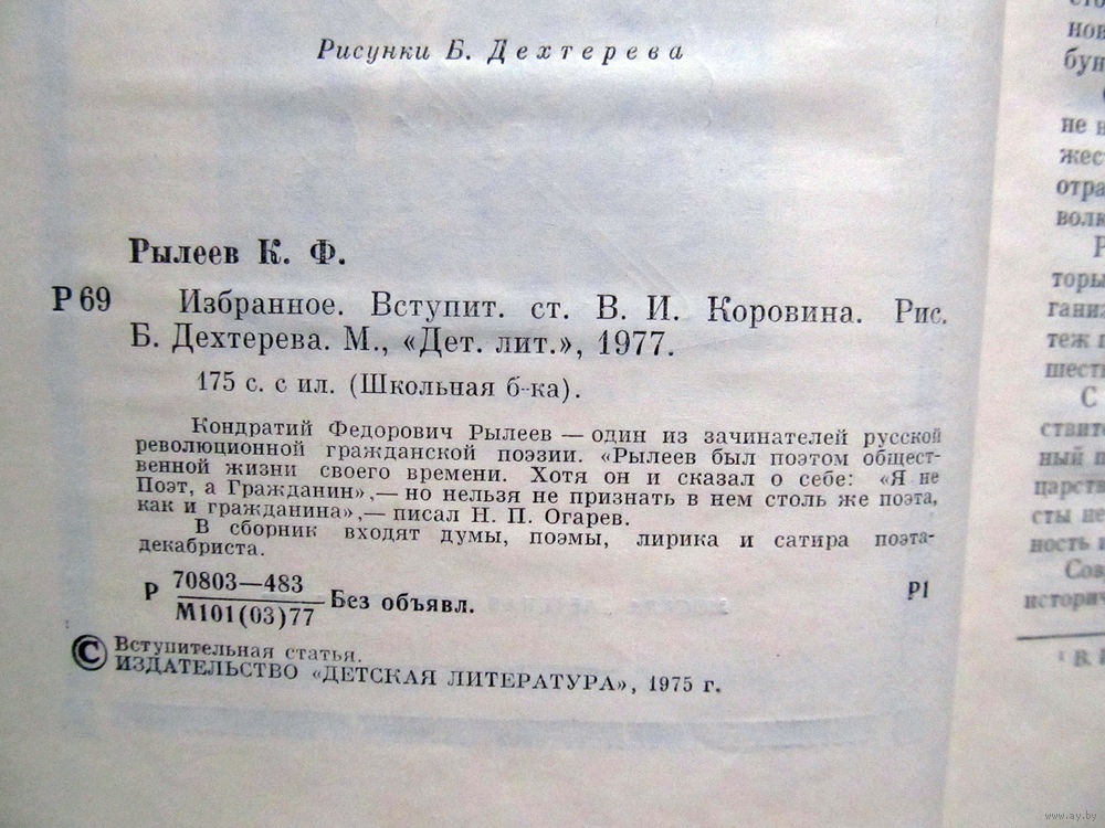 25-31 К.Ф. Рылеев Избранное Москва Детская литература 1977