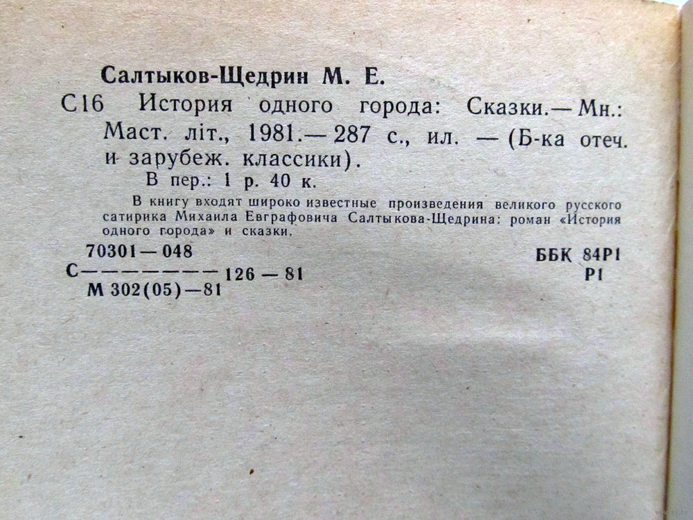 25-31 М.Е. Салтыков-Щедрин История одного города Сказки Минск 1981