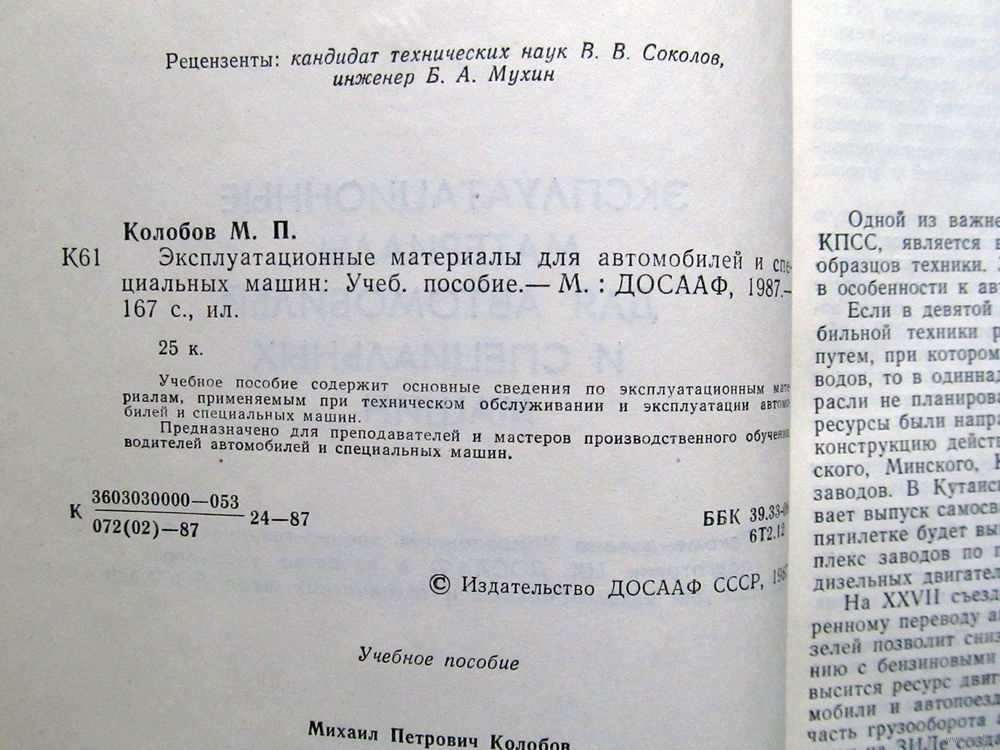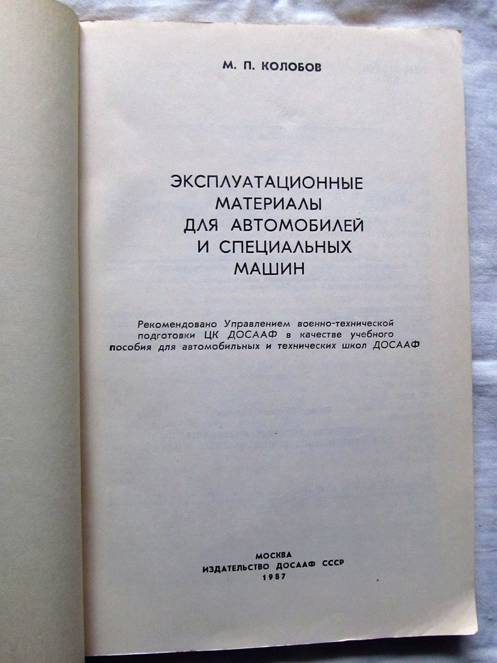 25-31 М.П. Колобов Эксплуатационные материалы для автомобилей и специальных машин Москва ДОСААФ 1987